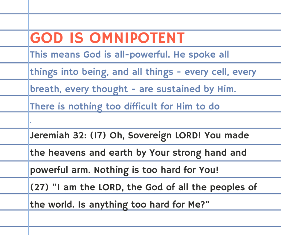 In a world where we don’t always have the ability to do what is needed or desired, it’s comforting to know we have a God who is all powerful.