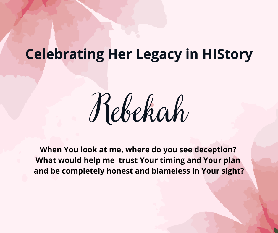 Her legacy for us: Rebekah was fearless. She went to a place she didn’t know to marry a man she didn’t know. But, Rebekah came from a family filled with deceptive practices. She herself helped with the deceit and tore her family apart. God wants us to trust Him and His plan rather than using the enemy’s strategies to get what God has promised.