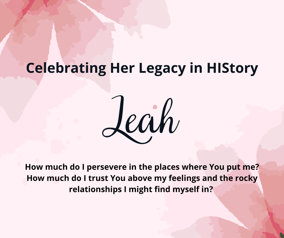 Her legacy for us: Leah had a hard life. She was married off under pretense perpetrated by her brother, forever unloved by her husband, always competing with her sister. But Leah had tenacity and she learned to trust in God rather than those around her. Even in all the deception and hardships, even with all her flaws, Leah was one of the fore-mothers of Israel – a builder of a nation.