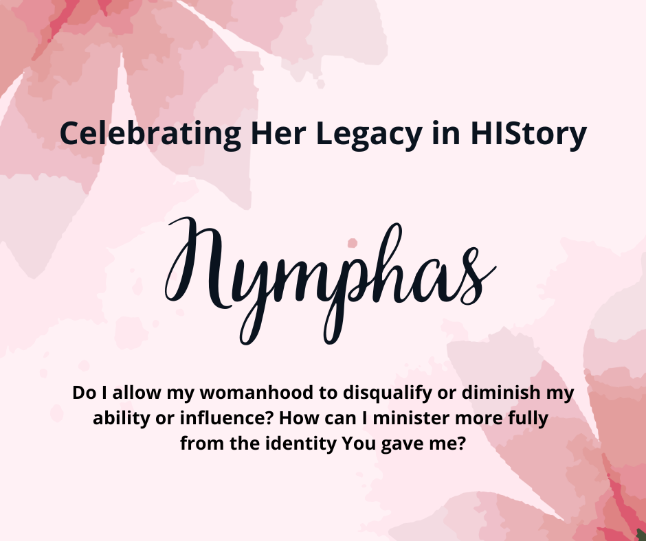 Her legacy for us:  Gender did not keep Nymphas from serving Jesus and His bride.  She used her wealth, position, abilities, and influence to honor God.